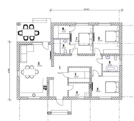Площадь дома: 125, 4 м2 + 10 м2 терраса (крытая) + 5 м2 крыльцо