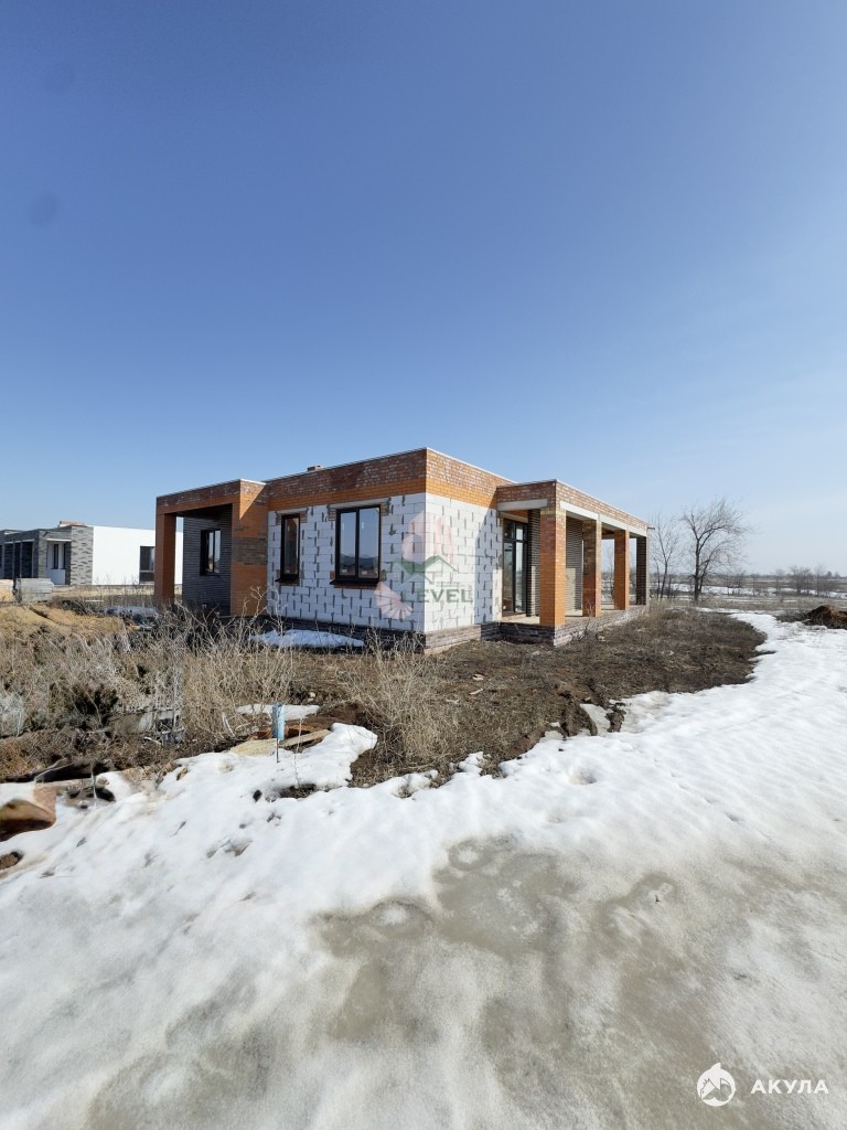 В стоимость дома входит:Фасадная штукатурка, которой пока нет. Есть пример внешнего вида lдома на фото в конце. Окна- пластиковые, плоская крыша с полимерным влагостойким покрытием.