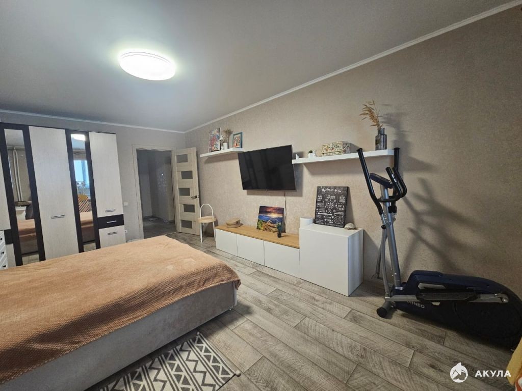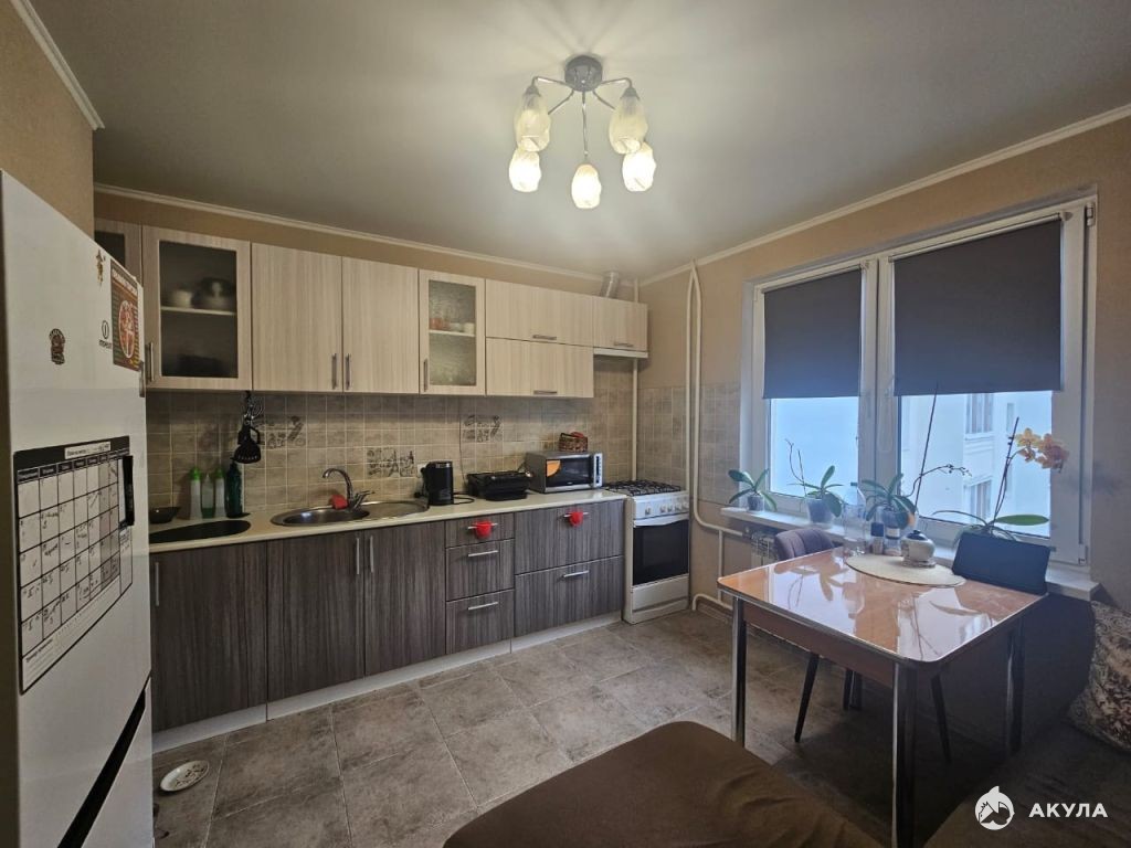 Продается большая 1к квартира с хорошим современным ремонтом и всей мебелью! Лоджия застеклена. Санузел раздельный в кафеле. Просторная кухня. 1 взрослый собственник. Рядом Лента, школа, детсад, транспорт, множество магазинов.
