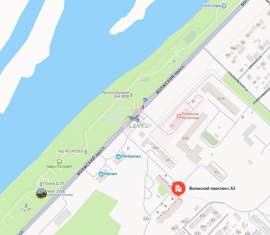 Район очень комфортный для проживания: магазины, в 3-х минутах остановка общественного транспорта (огромное количество маршрутов по Энгельсу и в Саратов), через дорогу парк Патриот, где можно погулять, покататься на велосипедах и на роликах, полюбоваться прекрасными видами на Волгу.