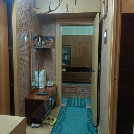 Трехкомнатная квартира, расположена в 1-м микрорайоне. Общая площадь квартиры составляет 57, 5 кв. м, жилая площадь 38, 3 кв. м, кухня 9 кв. м. Квартира находится на девятом этаже девятиэтажного панельного дома, построенного в 1977 году. Высота потолков 2, 7 метра. Окна выходят во...